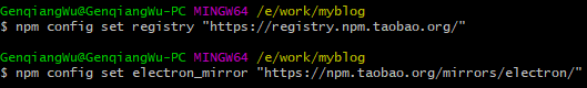 npm config set electron_mirror "https://npm.taobao.org/mirrors/electron/"