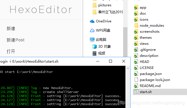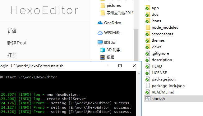 顺利的话,gitbash 会弹出来,让后 HexoEditor就会弹出来了~