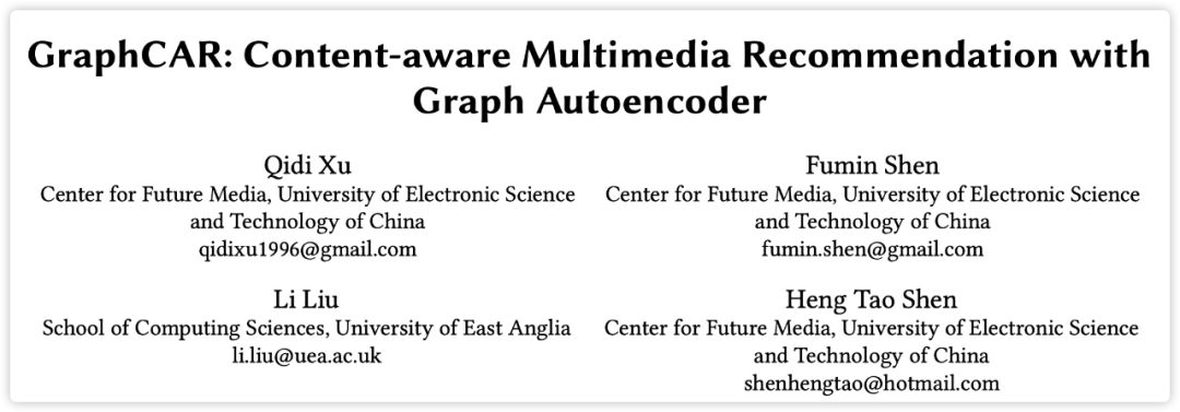 论文标题:GraphCAR: Content-aware Multimedia Recommendation with Graph Autoencoder