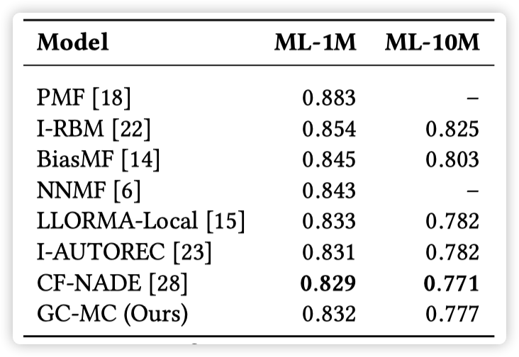 GCMC 和 对比的方法都不使用 side information:ml-1m,ml-10m