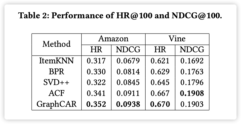 对比下来,GraphCAR 的方式更直接,但貌似这种方法只能在有 users 和 items 的 side information 的情况下才能生效。