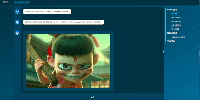 ▲ 第三关:用print语句帮哪吒在江湖中扬名立万