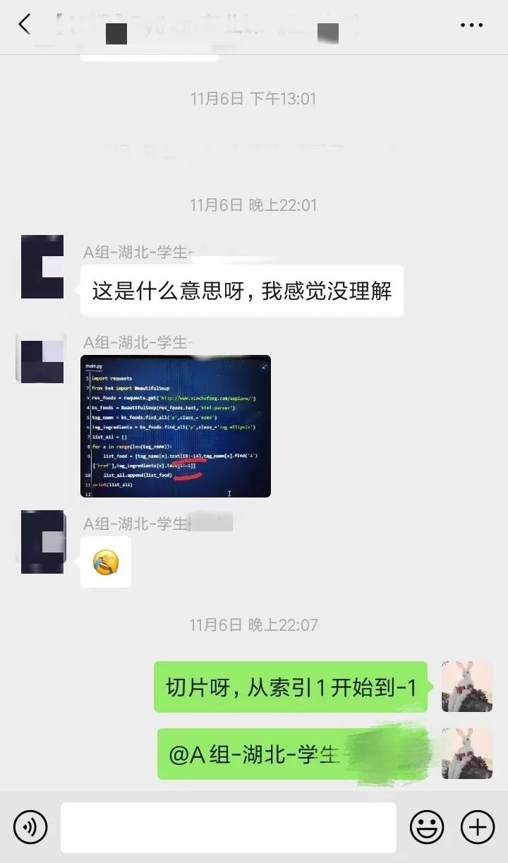 每个学员都有自己的专属学习群,学习遇到问题卡壳了,直接反馈给助教,助教马上帮大家分析出错点,并帮你解决。