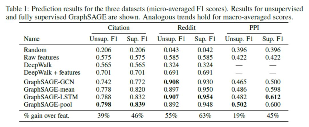 对于聚合函数的比较上,LSTM aggregator 和 Pooling aggregator 表现最好,但是前者比后者慢大约两倍。