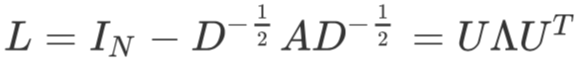其中图上的拉普拉斯矩阵(归一化后)L 是一个半正定对称矩阵,它具有一些良好的性质,可以进行谱分解:,其中 U 是 L 的特征向向量组成的矩阵,Λ 是 L 的特征值组成的对角矩阵,