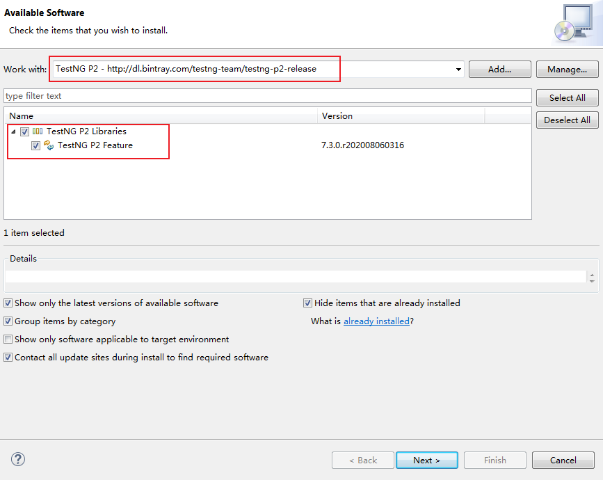 受网络等因素影响,在线安装方式速度比较慢,可以通过如下方式离线安装TestNG插件。