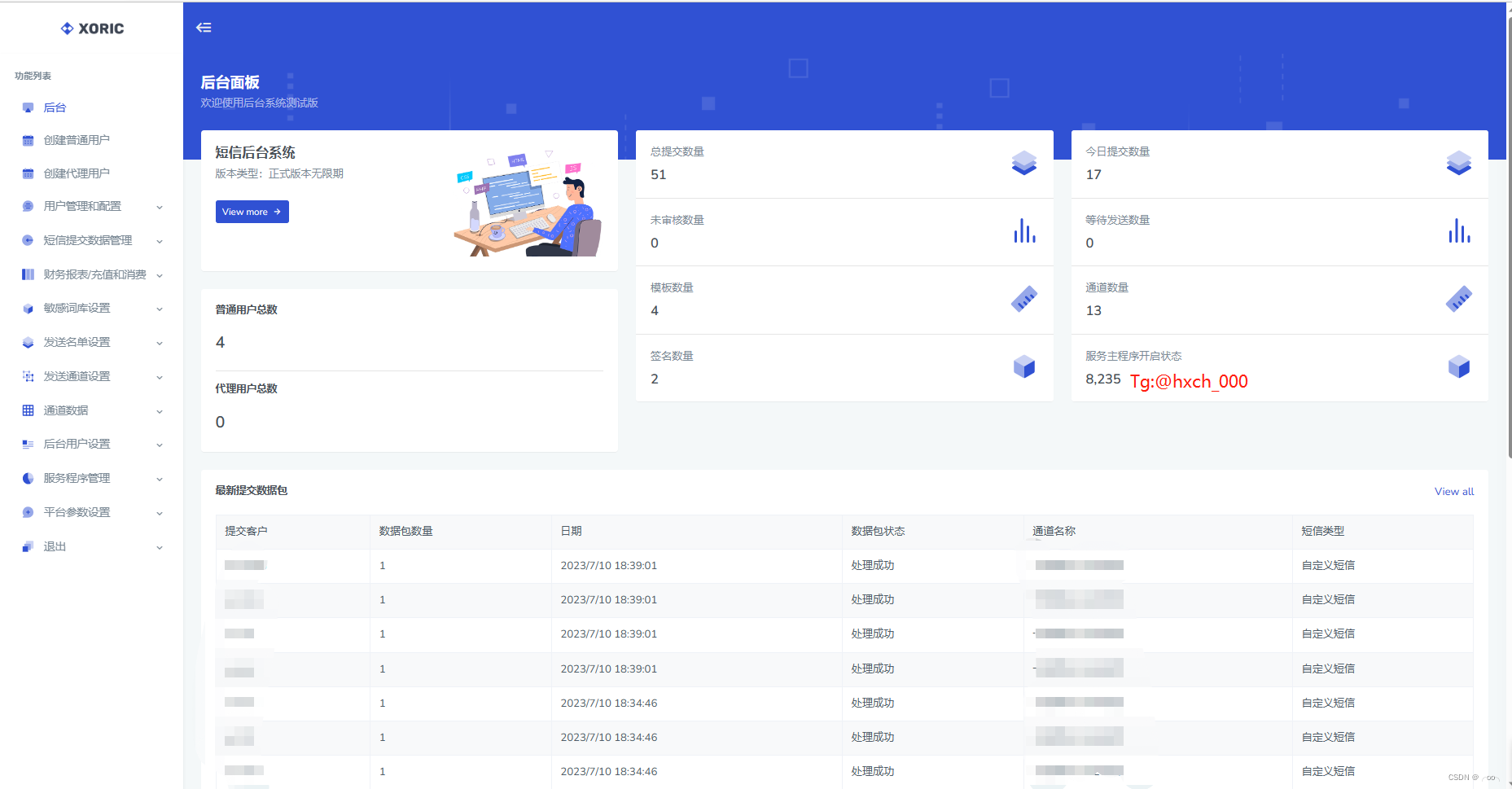 作用:通过用户管理和配置来创建客户和代理商、充值、分配通道等