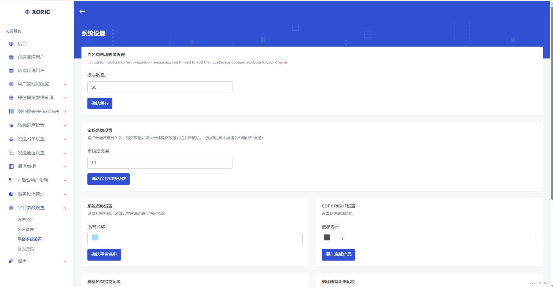 作用:管理整个系统的外部显示。例如设置公告,管理公告,系统名称,copryright