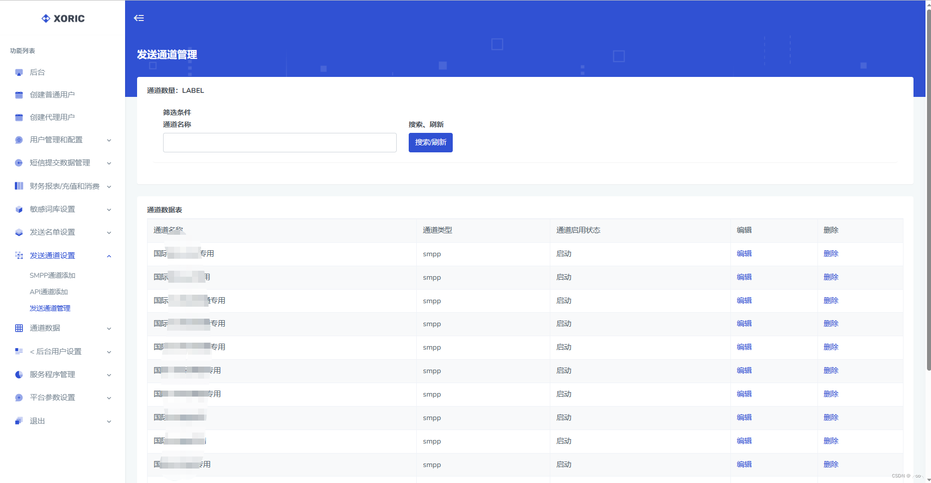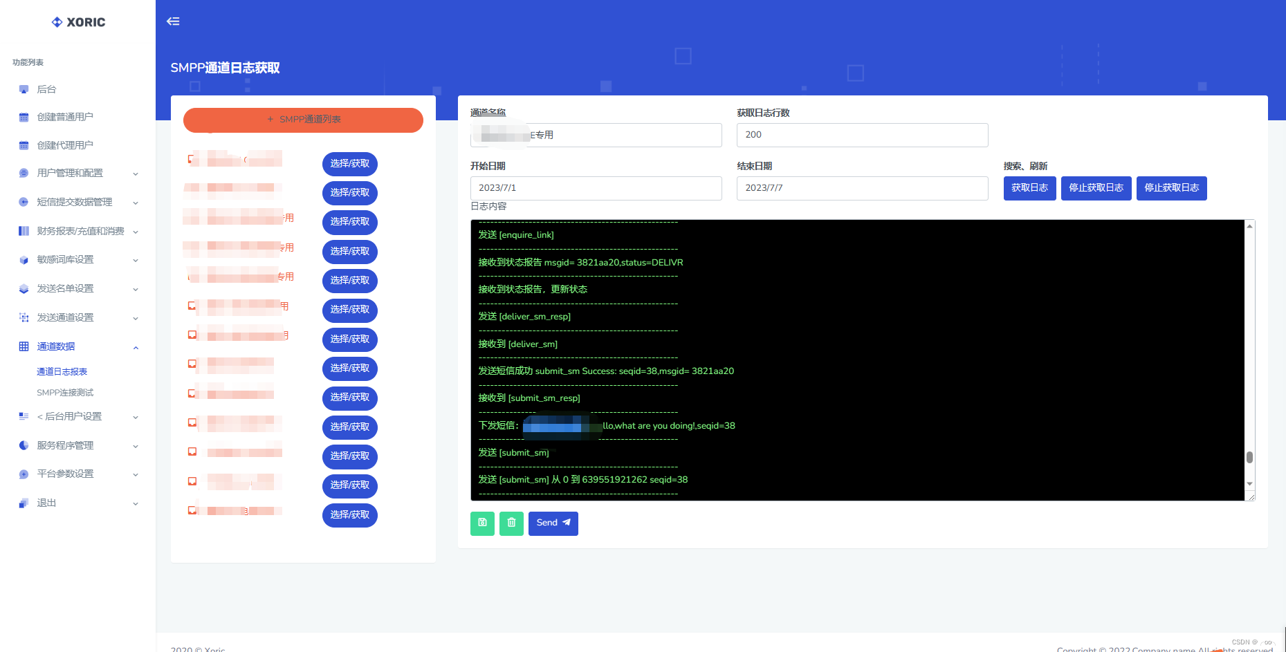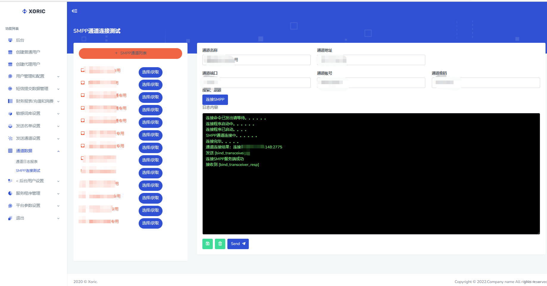 1.1:通道数据模块:通道数据模块包含(通道日志报表、q2356490230、SMPP通道连接设置)