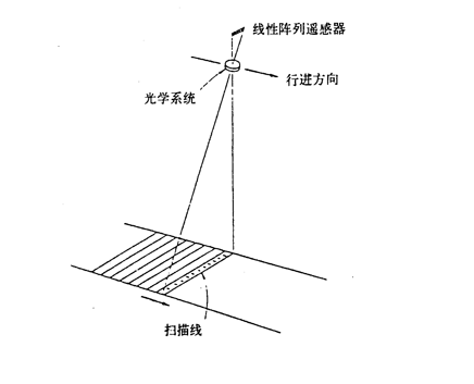 光机扫描仪是利用旋转扫描镜,逐个像元轮流采光,即沿扫描线逐点扫描成像;推扫式扫描仪不使用摆动的扫描镜,而是把探测器沿扫描方向(垂直于飞行方向)阵列式排列来感受地面响应,仪器中有一个平面反射镜,将地面辐射来的电磁波反射到反射镜组,然后聚焦在CCD阵列元件上,CCD的输出端以一路时序视频信号输出,同时采光,同时转化为电信号,同时成像。在CCD元件扫描仪中放置分光器件和不同的CCD元件,可使扫描仪既可以进行单波段扫描,也可以进行多波段扫描。