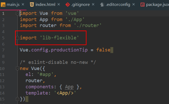 安装好了之后还需要在项目的入口文件 main.js里引入 lib-flexible