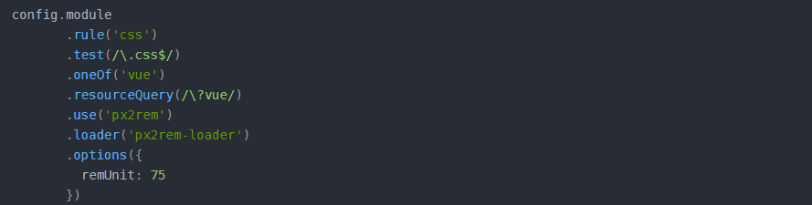 在vue-cli生成的webpack配置中,vue-loader的options 和其他样式文件loader最终都是由 build/utils.js 里的一个方法生成的,我们只需要在cssLoader后再加一个px2remLoader即可,px2rem-loader的remUnit选项意思是1rem = 多少像素,结合lib-flexible的方案,我们将px2remloader 的options.remUnit设置成设计稿宽度的1/10,这里我们假设设计稿宽度为1920px.