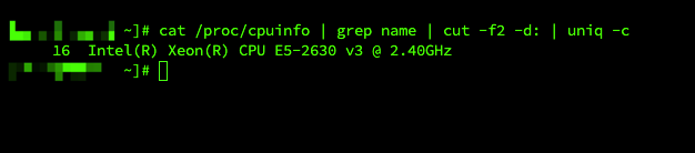[xxx@xxx ~]# cat /proc/cpuinfo | grep name | cut -f2 -d: | uniq -c