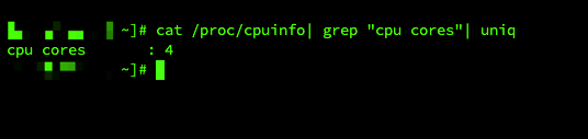 [xxx@xxx ~]# cat /proc/cpuinfo| grep “cpu cores”| uniq