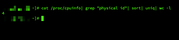 [xxx@xxx ~]# cat /proc/cpuinfo| grep “physical id”| sort| uniq| wc -l