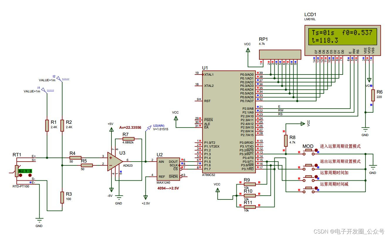 基于单片机的PT100热电偶测温1602仿真设计(#0005)