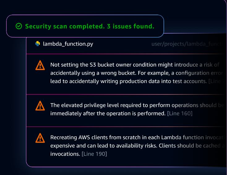 使用 CodeWhisperer,您可以扫描 Java、JavaScript 和 Python 项目以检测难以发现的漏洞,例如开放全球应用程序安全项目(OWASP)中排名前十的漏洞,或者不符合加密库最佳实践及其他类似安全最佳实践的漏洞。该服务分析 IDE 中的现有代码(无论是由 CodeWhisperer 生成还是由您编写),高度精确地识别有问题的代码,并对如何修复代码提供明智的建议。