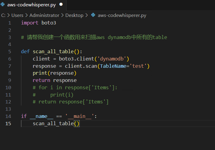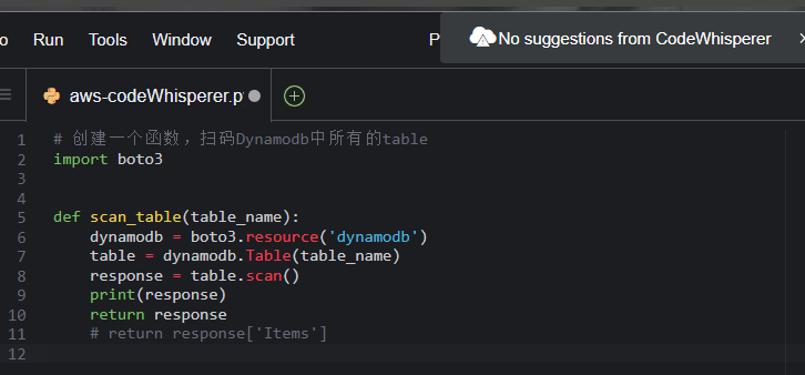 那么到这里,通过这一点丝滑小连招,咱们呢就已经通过使用提示词让CodeWhisperer帮咱们编写好Python函数代码了,后续直接调用就可以啦