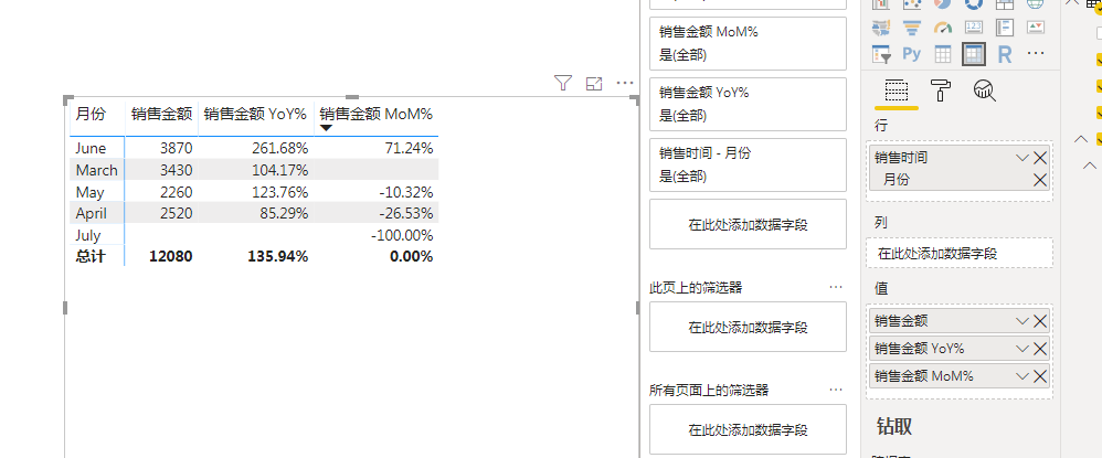 这里面的年增率和月增率其实就是同比、环比的计算效果,我们来添加一下看看。