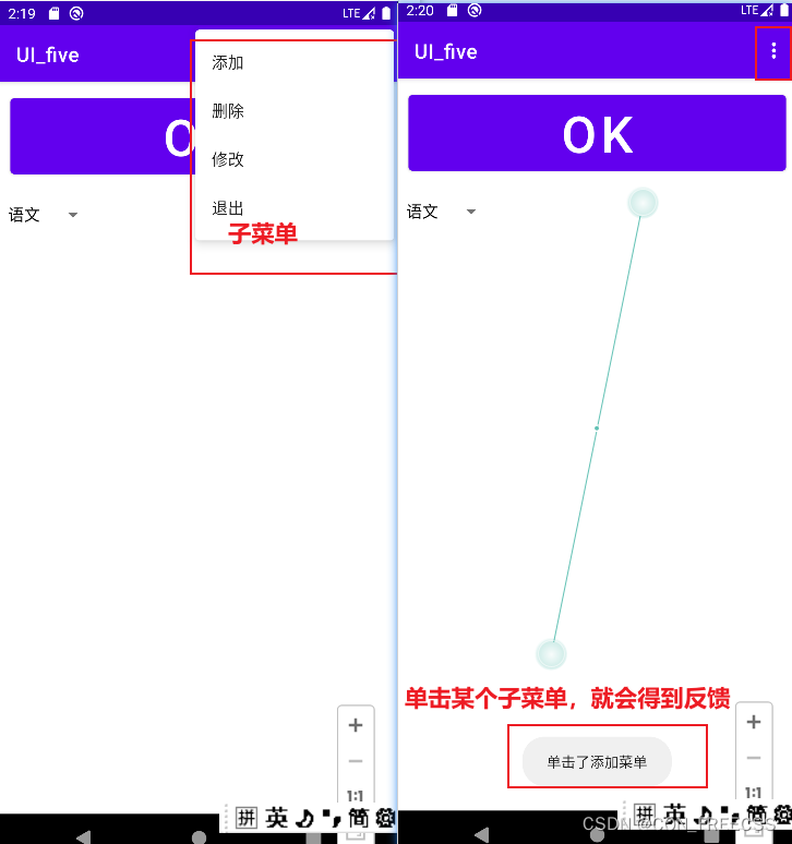 @Overrideprotected void onCreate(Bundle savedInstanceState) {super.onCreate(savedInstanceState);setContentView(R.layout.activity_main);btnok=findViewById(R.id.btnok);btnok.setOnClickListener(new View.OnClickListener() {@Overridepublic void onClick(View view) {Toast t=Toast.makeText(MainActivity.this,"已经确认",Toast.LENGTH_SHORT);t.show();//show显示Toastt.setGravity(Gravity.CENTER,0,0);//setGravity设置Toast的位置,这个Gravity.CENTER,0,0就正好在中间ImageView image1=new ImageView(MainActivity.this);image1.setImageResource(R.mipmap.ic_launcher);LinearLayout toastview=(LinearLayout) t.getView();toastview.addView(image1);//添加到线性布局中显示,这样就可以显示图片了Toast.makeText(MainActivity.this,"ok",Toast.LENGTH_SHORT).show();