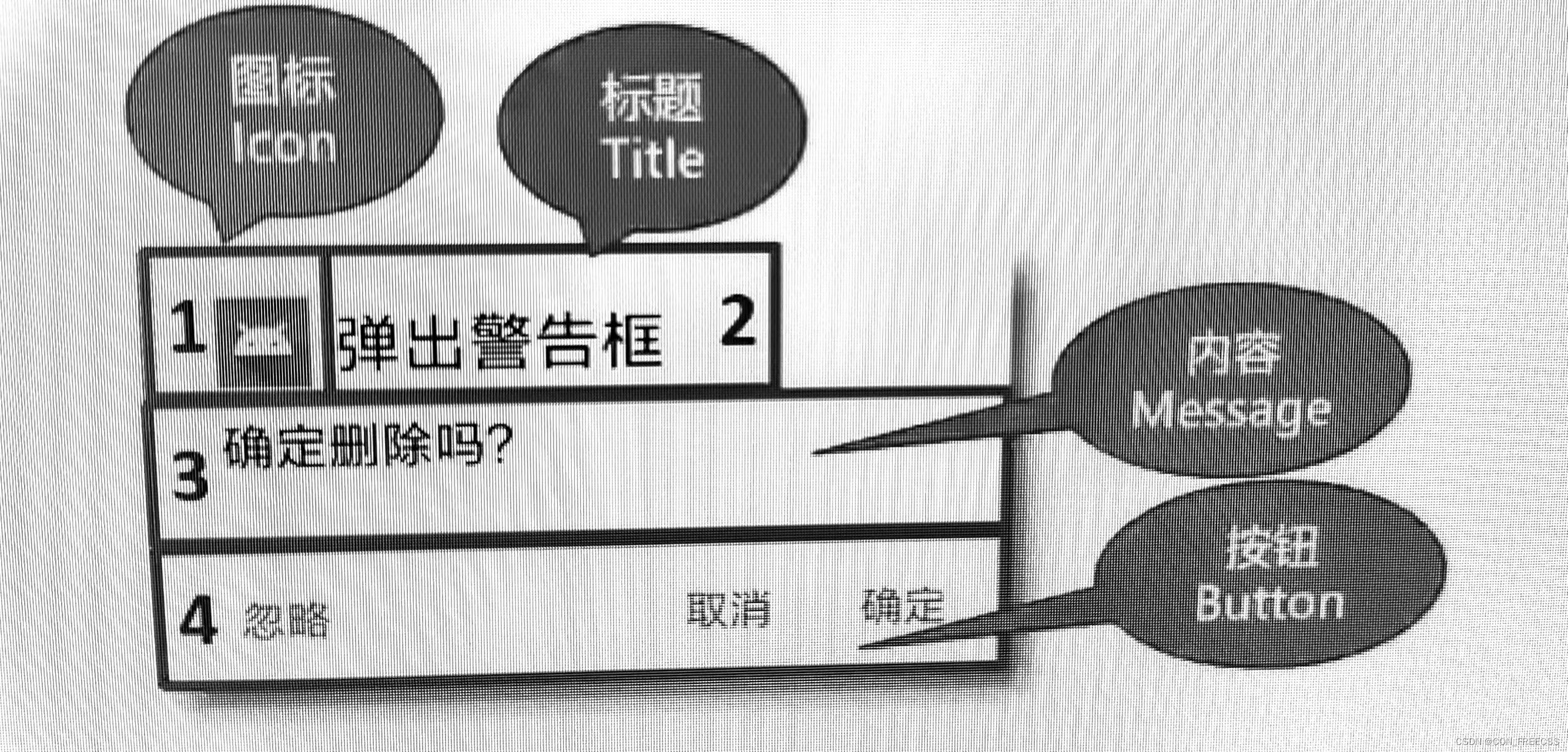 应用场景:在APP界面中选择退出时,通常会弹出一个对话框,让用户选择是否退出,这种提示框就是Dialog提示框,内容包括:内容:图标、标题、内容、按钮。需要用户做出决定再继续行动。