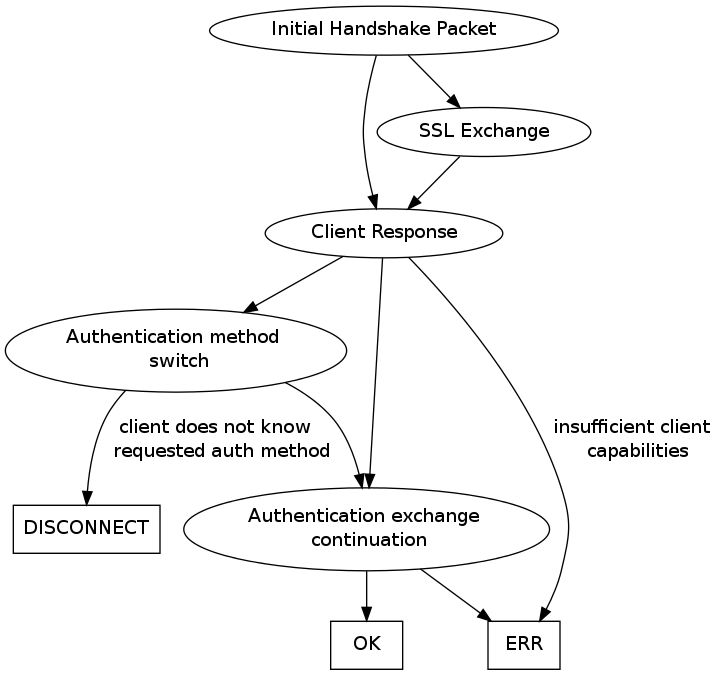 MySQL服务端在接收到客户端的连接请求后,先进行服务端和客户端版本间所具有的功能信息的交换和匹配(Capability Negotiation),然后根据两端的协商结果生成不同格式的初始化握手协议包,并向客户端写入改协议包。协议包中包括由MySQL服务端分配的连接主键、服务端当前版本功能描述(Capabilities)以及为验证授权生成的密文。