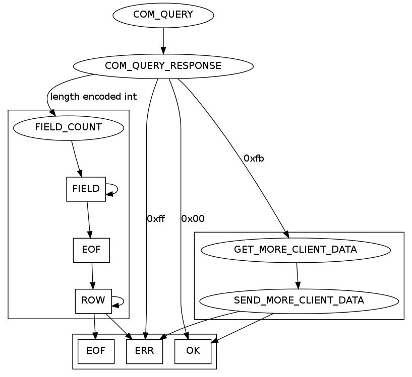 COM_QUERY的响应协议包则较为复杂,见下图: