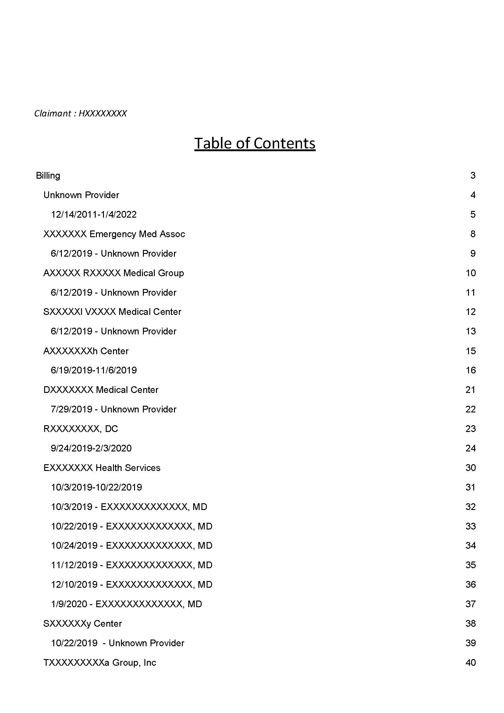 下面俺讲一下俺做过的一个医疗行业的项目。项目的背景是这样的:每个病人在医院里会有很多很多文档,例如:病历、保险单、注意事项、营养计划、付费记录、影像资料、护理记录等等,啥内容都有。当病人需要打官司或者有其他的用途时,就需要把这些内容整理好,形成一个PDF文件。这个PDF的文件前面是个目录: