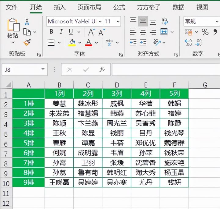 如下图是某次考试考生座次表,现在想要将座次表进行重新排序
