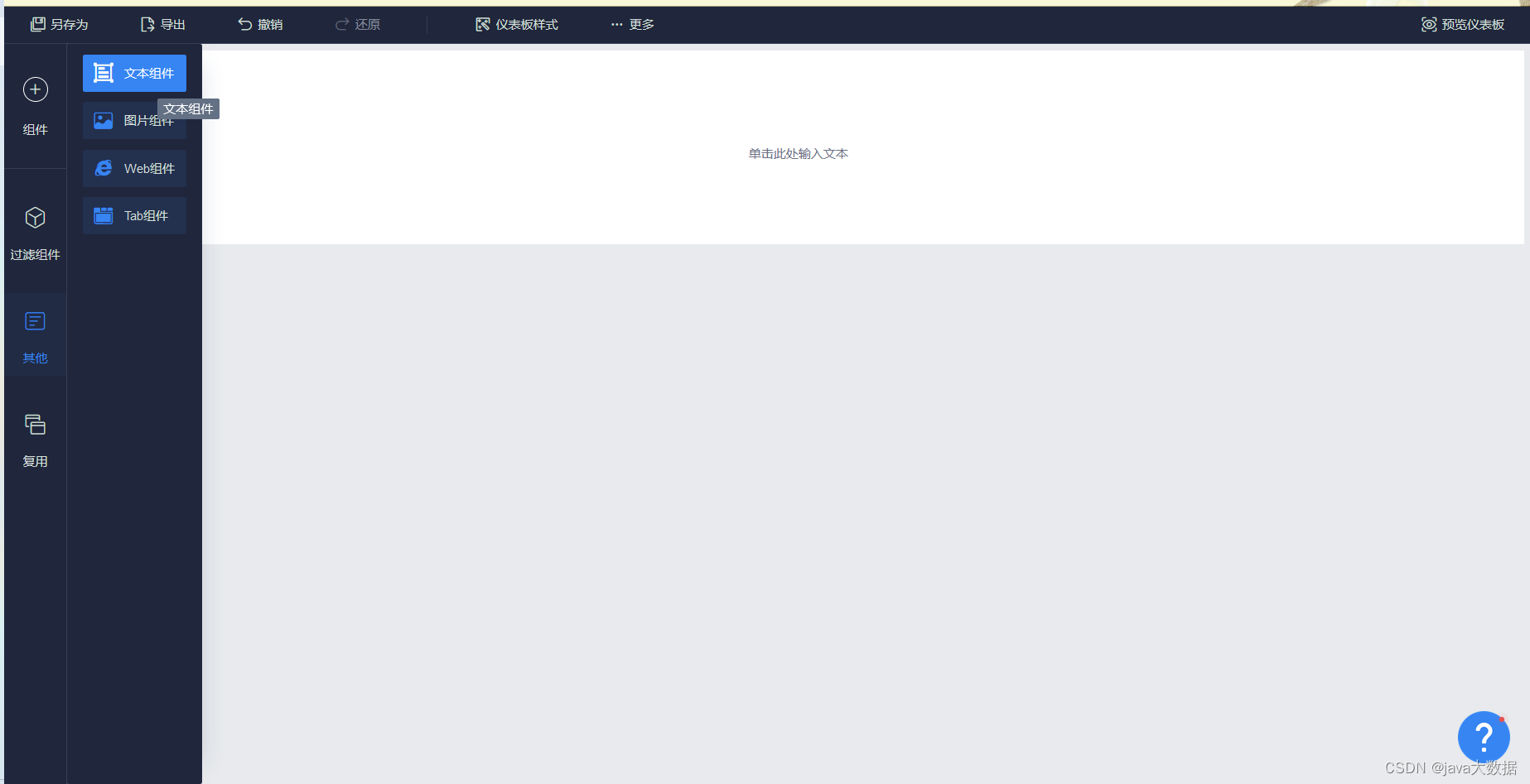 选择其他,然后选择文本组件,将框撑满上部,最终设置成如下即可