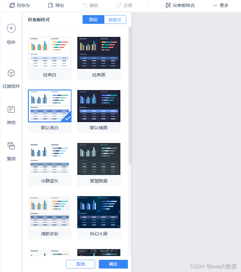 点击仪表盘样式进行样式选择 ,可以改变仪表盘的布局样式
