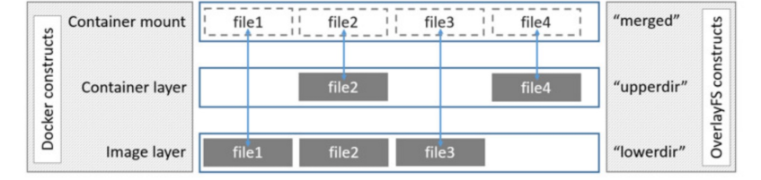 注意镜像层和容器层是如何处理相同文件的: 容器层(upperdir)的文件是显性的,会隐藏镜像层(lowerdir)相同文件的存在。并在容器映射(merged)显示出统一视图