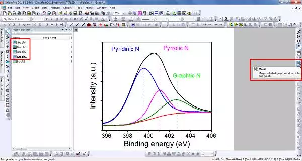 以一张xps图为例演示Merge的用法。先在不同的graph里单独画出要合并的图,然后点击Merge快捷按钮。
