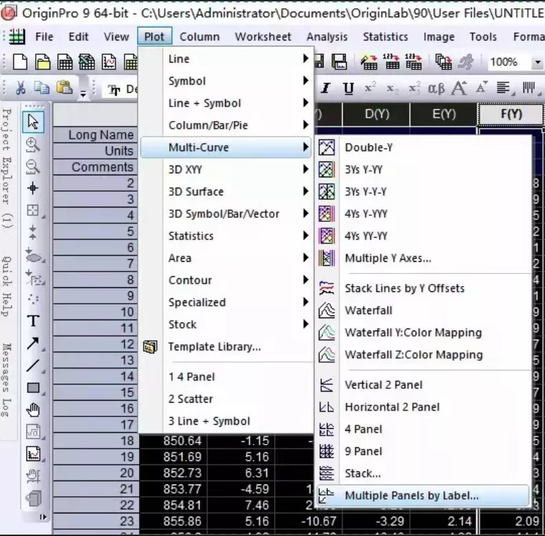 多屏图模板可以用于多变量的比较,根据Y值数据的多少进行绘制,导入数据后,执行Plot>Multi-Curve>Multiple Panels by Lable,即可绘制多屏图。