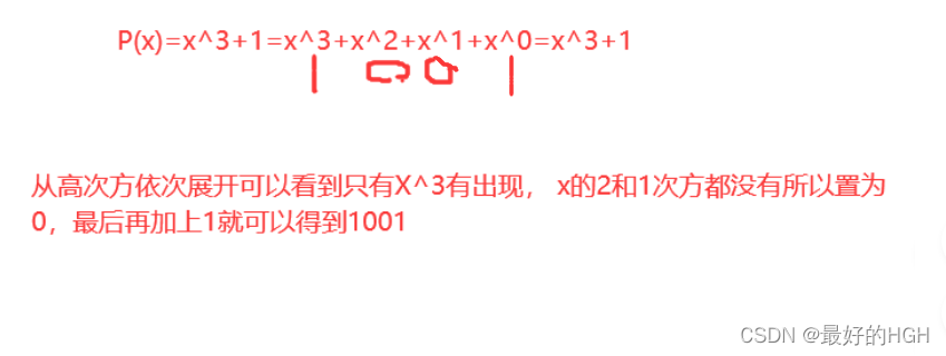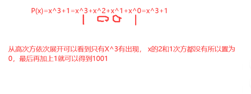 根据生成多项式P(x)可得1001.可能会有兄弟疑惑1001哪里来的,方法如下图