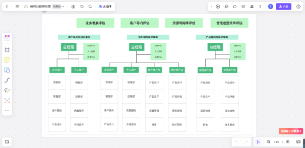 组织结构图通常用来表示组织中人员、职级、职位、职责等的关系,也可以用来表示主题下上下左右的逻辑关系,有助于业务管理者更好地规划业务运作流程和职能规划及部门设置。