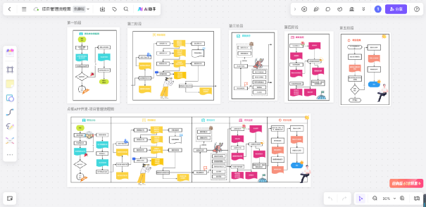 流程图是一种用于计划、可视化、记录或流程改进的思维导图方法,可以用来列举关于顺序、时间过程、步骤等等时间问题。