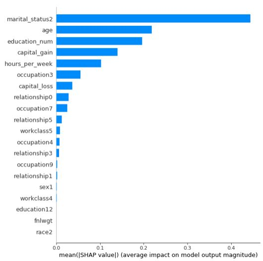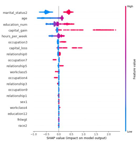 - martial_status2这个特征最重要,且值越大,收入会相对更高,到达一定峰值,会明显下降