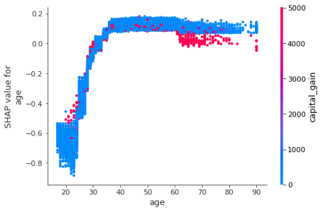 - 排除所有特征的影响,描述age和capital_gain的关系。