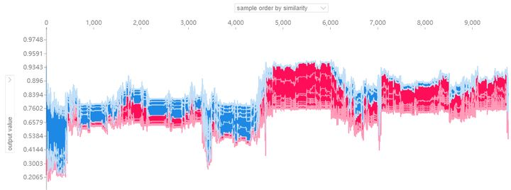 - 红色是起正向作用的特征,蓝色是起负向作用的特征