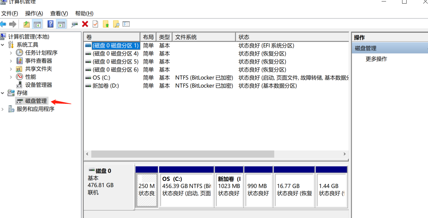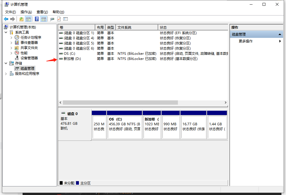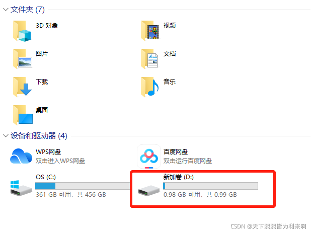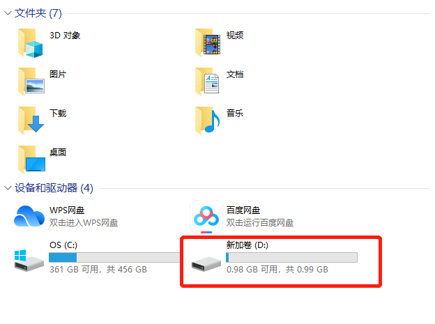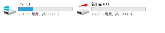 13.磁盘新建完成变成蓝色状态,打开文件管理器,可以看到新建的磁盘