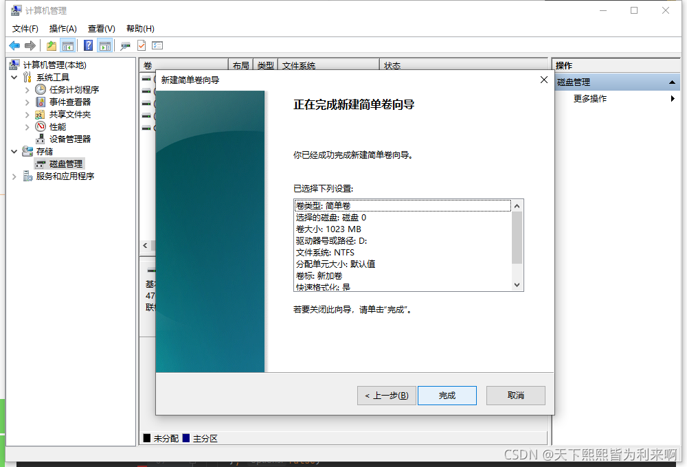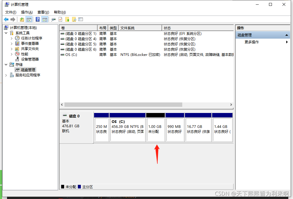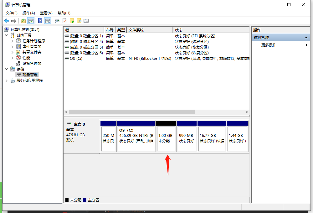 6.完成后,界面会出现一个黑色框1G未分配的磁盘