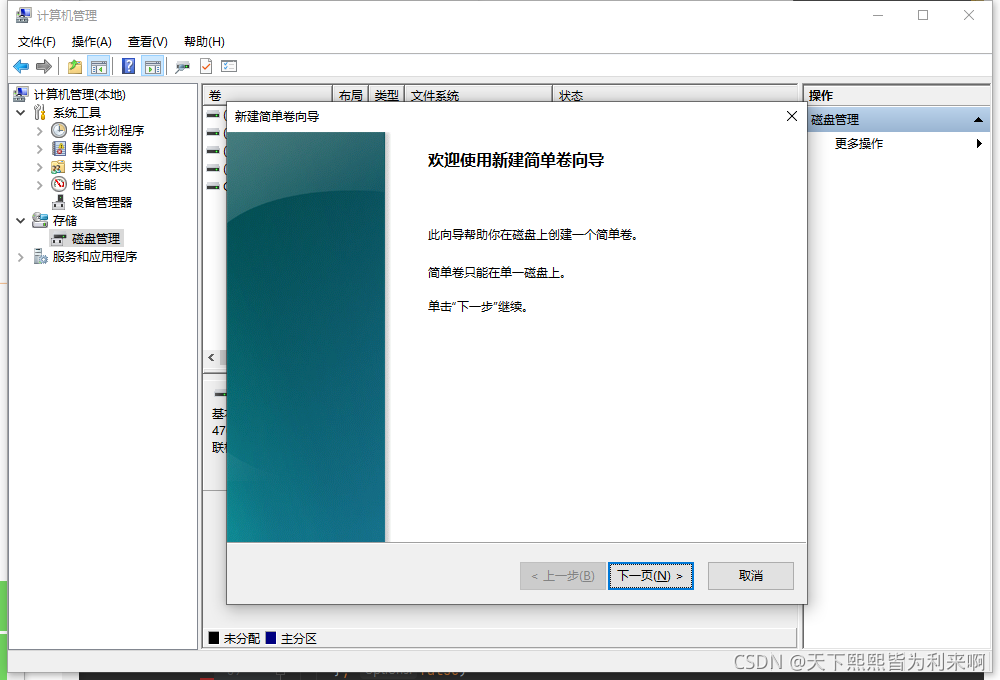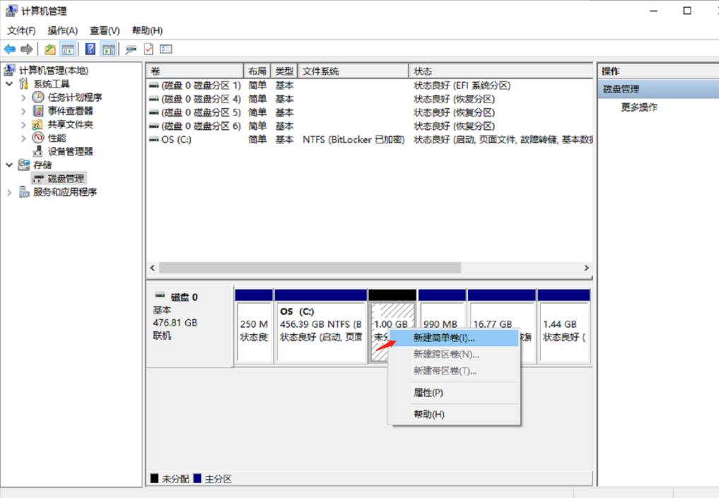7.鼠标移动到未分配的磁盘上右键选择【新建简单卷】