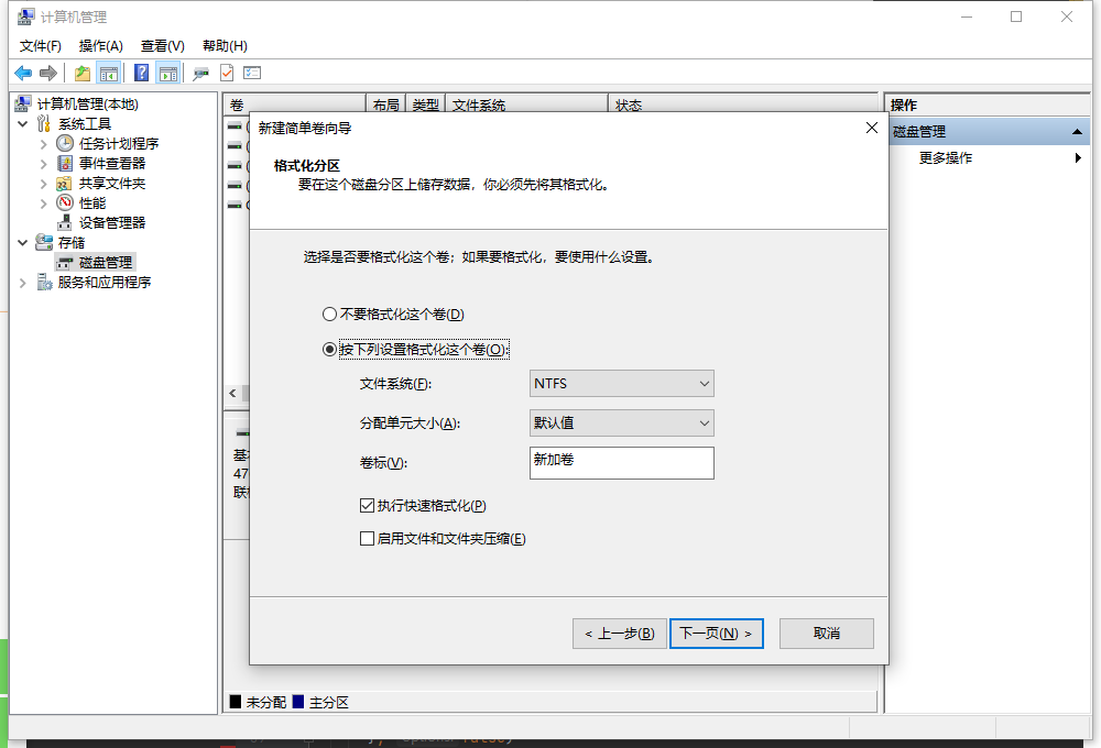 11.填写卷标(就是那个盘的名字,如果不写的话。默认名字就是新加卷,比如改成soft那这个盘的名字就是soft)