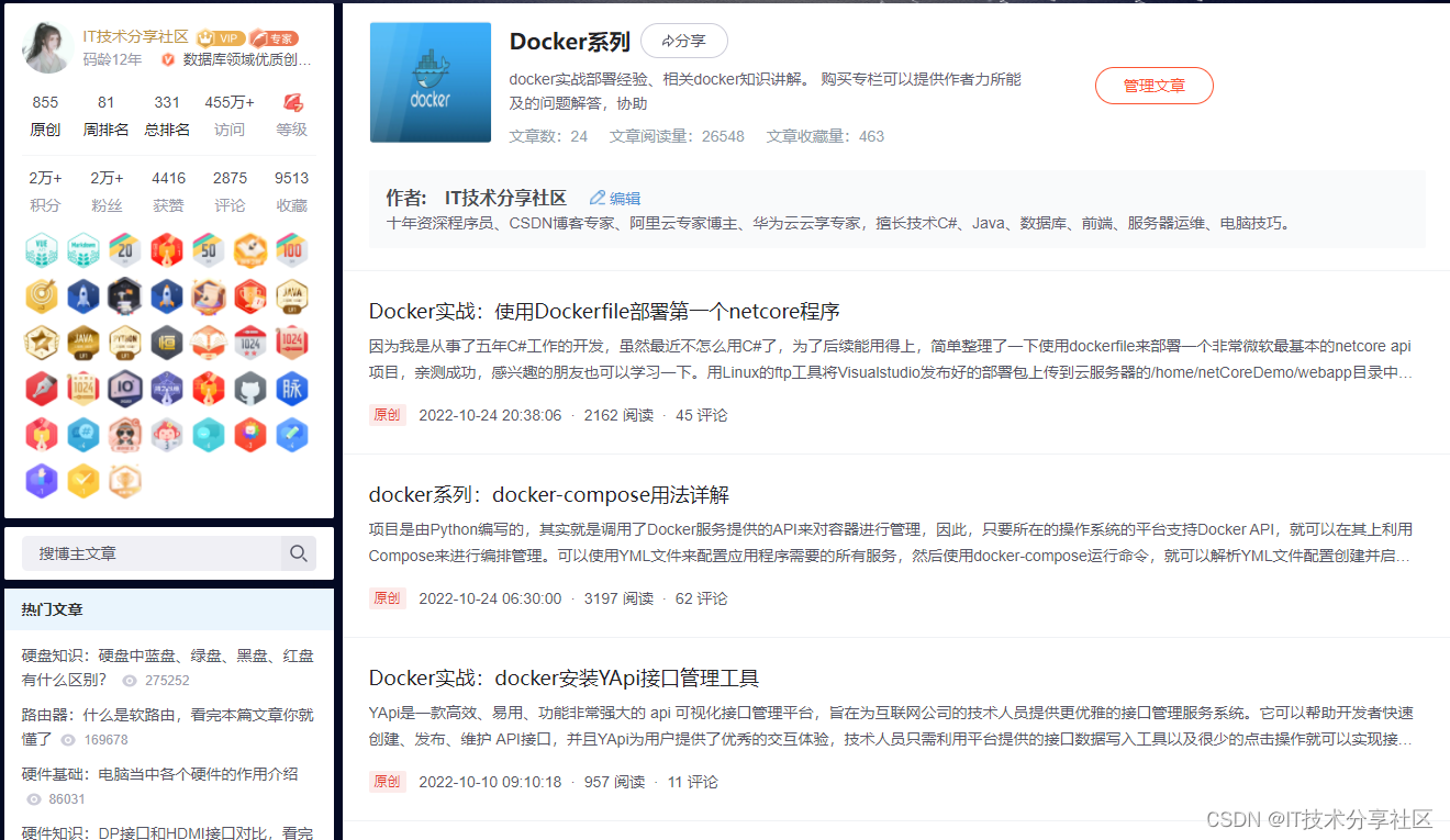 其实在2022年3月份之前我对CSDN几乎没怎么关注,主要是自己做公众号,然后定时同步文章到CSDN,到2022年3月份才开始真正重视起来,把自己的上一千多篇文章进行了分类梳理、然后取消微信公众号同步,开始认真写文章,半年的时间获得了CSDN数据库优质作者的称号以及博客专家的认证。粉丝从不到1000人,达到了1W粉丝。