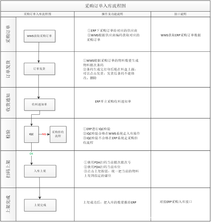 - 品质判断不合格时ERP的收料数据不用同步给WMS,返回到ERP拒收流程,通过ERP进行处理