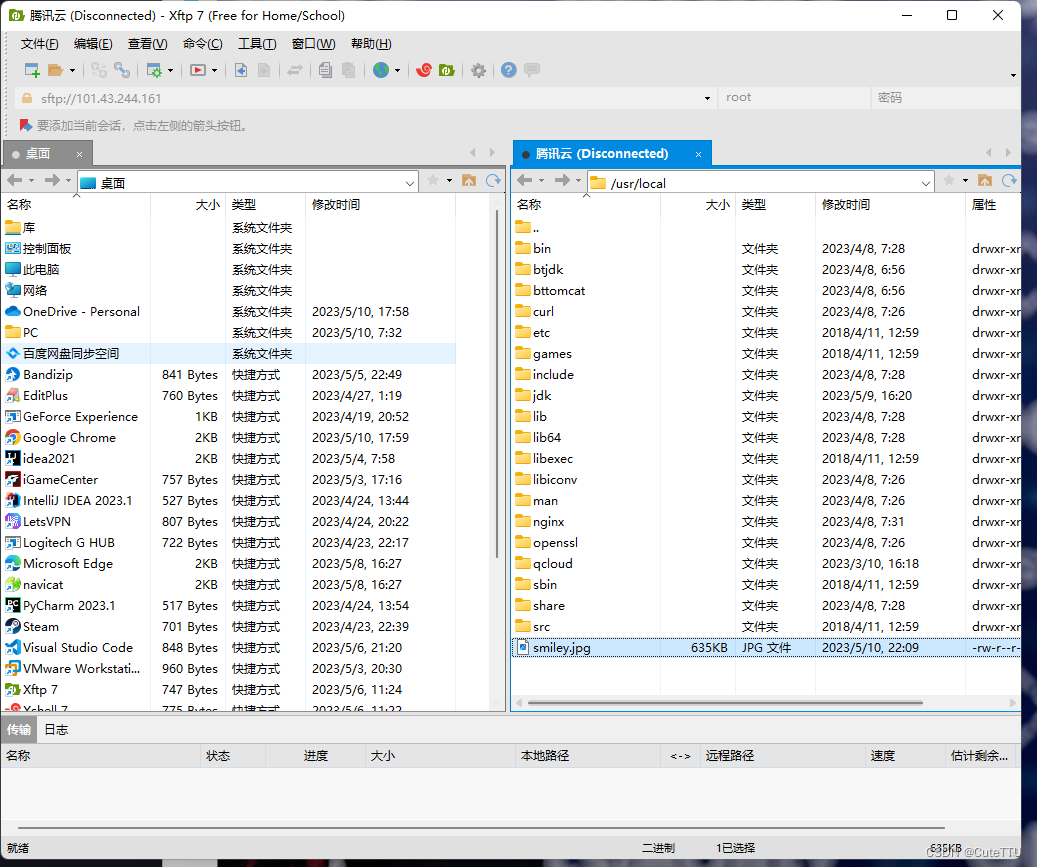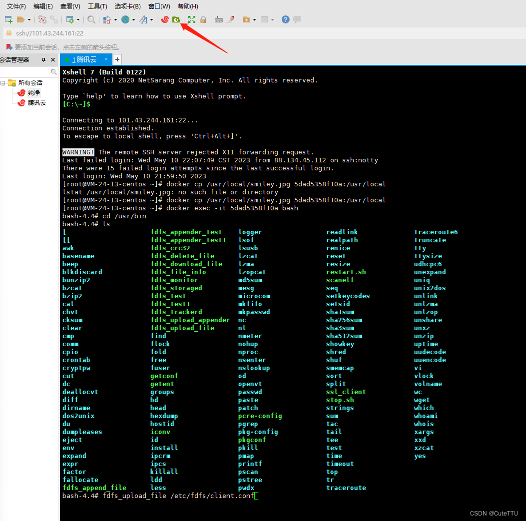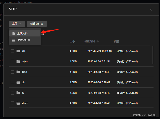 然后用Xshell7 工具远程连接服务器然后点击新建文件传输Xftp7 来上传文件就成功了, 我也不知道为啥子直接用腾讯云上传不了, 后面我去用工具就可以了.
