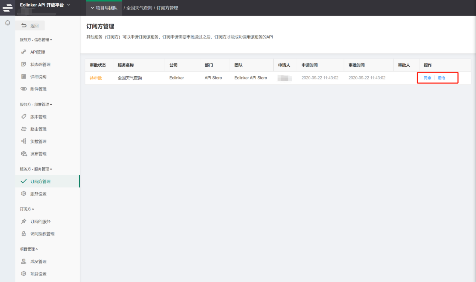 *诚实沟通 * 当决定弃用API时,请对API的使用者保持开放和诚实。发送消息宣布预期的弃用,包括弃用时间范围,下一版本发布时间表以及其他信息(如支持,联系信息等)。这时API管理工具可以迅速派上用场的地方是查看访问使用API的用户列表。也可以在API开发人员门户及其文档中进行通信。例如,Eolinker开放平台,支持查看API用户列表。