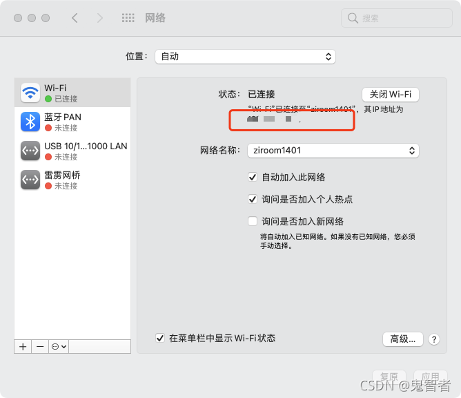 ip:获取方式系统便好设置>网络>状态出会显示ip地址,或者终端命令:ifconfig 查看ip