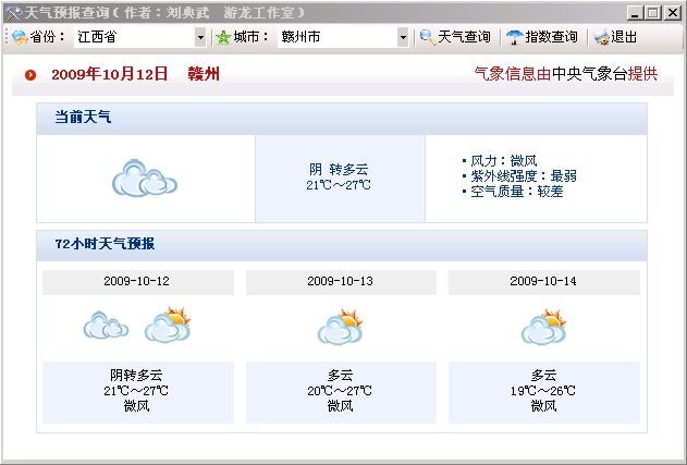 查 询各地天气预报,同时还能够进行指数查询,简单易用!